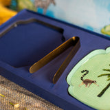 Dimensions: Box: 19" x 9" x 1.5" | Platter: 7.3" x 7.3" x 0.4" | Tong: 5.9" x 0.9" x 1.4"