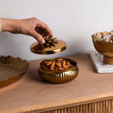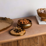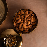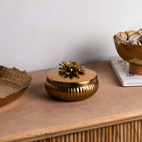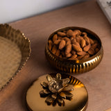 Add a touch of elegance to your home with the Afreen Jar, a stunning blend of luxury and functionality. Crafted from premium metal with a lustrous gold finish, this jar exudes sophistication while offering versatile use for storage or serving. The highlight of its design is the casted aluminium flower adorning the lid, adding a delicate yet artistic touch. Whether used to store dry fruits, sweets, or trinkets, or as a statement piece on your table, this jar effortlessly enhances any setting with its opulent charm. Perfect for gifting or elevating your décor with a timeless, regal aesthetic.