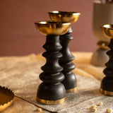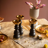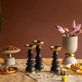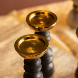 A bold fusion of form and elegance, the Ignis Candle Holder Set of 3 features a sculptural matte black body with fluid, wave-like contours. Accented with sleek metallic gold on the top and base, this set adds dramatic sophistication to modern tablescapes, mantels, or festive setups. Perfect for holding pillar candles, it makes a striking statement in any setting.
