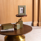Elevate your décor with the Lume Candle Holder. Crafted with a striking geometric design in gold and deep green, this bold piece brings modern sophistication and radiant warmth to any space—perfect for intimate evenings or festive gatherings. Pair it with other pieces from the Lume Collection for a cohesive look.