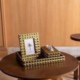 Add an opulent touch to your serveware collection with the Lume Tray. Featuring a bold geometric pattern in luxe gold with emerald green accents, this tray is finished with a sleek black base that enhances its modern elegance. Perfect for serving in style or as a chic décor statement on your coffee table or console. Pair it with other pieces from the Lume Collection for a cohesive look.
