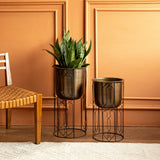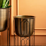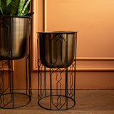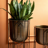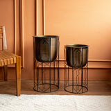 Introduce a touch of elegance to your decor with the Aztec Planter Set. This set of two planters combines the timeless beauty of antique brass pots with the bold, intricate design of Aztec-inspired black stands, creating a captivating and unique addition to any space.