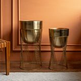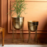 Elevate your home decor with our stunning Ines Planter Set, featuring exquisitely designed planters that bring a touch of sophistication and luxury to any space. Each planter in this set is crafted from high-quality metal with a lustrous gold finish, exuding timeless elegance and charm. The planters boast a sleek, modern aesthetic with clean lines that seamlessly integrate into any interior style, from contemporary to classic.