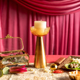 Introducing the Scandi Set, a versatile and elegant addition to your home decor. This set features a chic gold base that exudes sophistication, paired with a fluted glass top that adds a touch of delicate texture and refinement. Designed to be multifunctional, these pieces can effortlessly transition from stylish candle holders to functional serving dishes, offering both beauty and practicality.