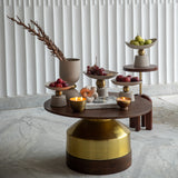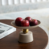 The Auri Platter fuses muted elegance with sculptural form. Crafted with a matte textured finish, its shallow oval bowl rests atop a golden orb and cylindrical base. Ideal as a centerpiece for fruit, decorative accents, or as a standalone art object, it brings warmth and modern luxury to any setting. Pair it with other pieces from the Auri Collection for a cohesive look.