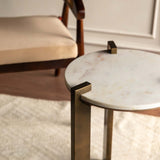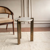 Refined and architectural, the Soren Side Table commands attention with quiet confidence. Three tapered legs in brushed gold-finished aluminium offer a sculptural foundation—elegant, strong, and subtly bold. Resting atop is a smooth white marble surface, cool to the touch and richly veined, adding timeless sophistication. With its clean lines and luxe materials, Soren is designed to elevate any space—whether styled solo or paired with other statement pieces.