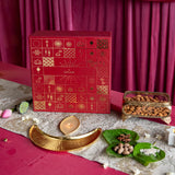 Celebrate the richness of Indian tradition with the Diya Gift Box, a tastefully curated set that embodies hospitality and warmth. This gift box includes a wax filled diya and a platter, perfect for enhancing dining experiences and sharing moments of delight.
