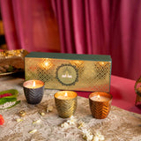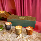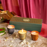 Introducing the Tatva Gift Box, featuring three exquisite Tatva Candles in striking finishes of gold, nickel, and copper. Each candle embodies the essence of luxury and craftsmanship, making it a thoughtful and refined gift for any occasion. Encased in elegant metal holders, these candles not only illuminate but also add a touch of sophistication to any space.