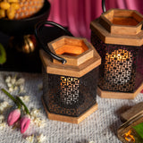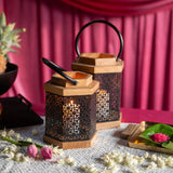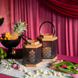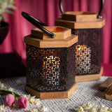 Introducing the Fez Hurricane, a beautifully crafted piece that combines natural materials with a modern touch. Featuring natural mango wood, the Fez Lantern exudes warmth and elegance. The design is enhanced by mirab jaali in black that adds a contemporary twist, while ensuring durability and style.