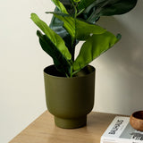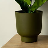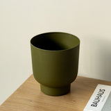A refined tabletop planter with a smooth cylindrical silhouette and a muted olive green finish. Designed for effortless styling, this planter brings a subtle pop of color while maintaining a clean, modern look. Perfect for small indoor plants, it blends seamlessly into contemporary and minimalist spaces, adding warmth and freshness to shelves, desks, or side tables.