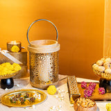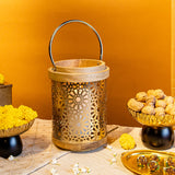 The Mirab hurricane dresses up your favorite scented or LED candles in elegant style. The candle holder showcases a distinct filigree pattern for an Art Deco-inspired look in your living room, bedroom, or entryway. This piece is crafted from metal with a gleaming metallic gold finish and a natural finished wooden base for the right amount of glam in your space. Plus, this candle holder also works well outside on the porch or patio.