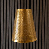 Light up your home with the Prufen Pendant Light. For a modern design scheme, this openwork metal pendant will look stunning in all spaces alike. Its perforated metal shade creates an atmospheric effect when illumination shines through the punched-out surface as well as the bottom.