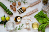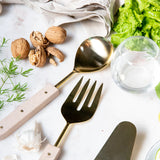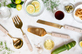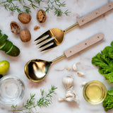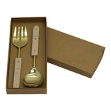 The Ruth Stone Dust 2 Piece Salad Servers make salads look modern. They bring fun to everyday meals and entertaining with their stainless steel salad servers. Each handle is trimmed with marbled stone dust combined with gold inlay along the length with gold-toned metal for a sophisticated, luxe finish.