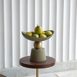 The Auri Platter is a contemporary decorative centerpiece that marries art with function. Its crescent-shaped bowl rests gracefully atop a gold spherical accent. Crafted with a textured matte finish, this piece exudes elegance and stability. Ideal for holding dry decorative elements or simply as a standalone sculpture on consoles or coffee tables. Pair it with the other pieces from the Auri collection for a cohesive look.