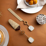 Adding glamour and style to your dining table is simple with these sleek cake serving set. The Kelly set features stonedust at the ends of the handles for a sleek look.