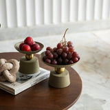 The Auri Bowl fuses muted elegance with sculptural form. Crafted with a matte textured finish, its shallow round bowl rests atop a golden orb and cylindrical base. Ideal as a centerpiece for fruit, decorative accents, or as a standalone art object, it brings warmth and modern luxury to any setting. Pair it with other pieces from the Auri Collection for a cohesive look.
