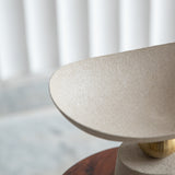 The Auri Platter is a contemporary decorative centerpiece that marries art with function. Its crescent-shaped bowl rests gracefully atop a gold spherical accent, while the textured matte finish exudes elegance and stability. Perfect for holding dry decorative elements or serving as a standalone sculpture on consoles or coffee tables, this piece brings refined artistry to modern interiors. Pair it with other pieces from the Auri Collection for a cohesive look.