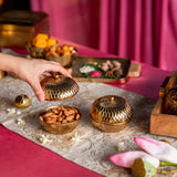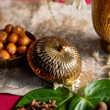 Introducing the Myra Jar, a stunning addition to the Myra Collection that embodies luxury and sophistication. This exquisite jar features a striking hammered gold finish, which adds rich texture and a radiant glow to its elegant design. The hammered detail creates a captivating play of light, making the Myra Jar a standout piece in any setting.