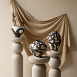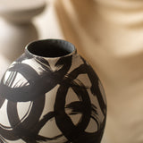Make a bold artistic statement with the Toscano Vases, a striking duo of handcrafted pieces designed to elevate any contemporary space. Featuring fluid, abstract black brushstroke patterns on a clean ivory base, these vases capture the spontaneity and movement of modern expressionism. The sculptural silhouettes—one compact and rounded, the other taller and elongated—create dynamic contrast when styled together or separately. Ideal as standalone art objects or for showcasing dried botanicals, these vases bring gallery-inspired elegance into your home.
