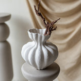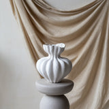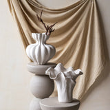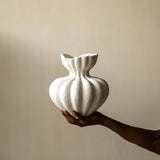 The Swirl Vase brings a delicate charm to your décor with its fluted silhouette and soft curves that resemble a blooming flower. Crafted in a speckled ivory ceramic finish, this sculptural piece adds texture and elegance to any space. Perfect for holding a small bouquet or standing alone as a decorative object, it’s a beautiful fusion of organic form and timeless design.
